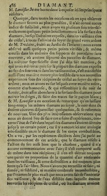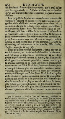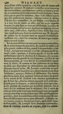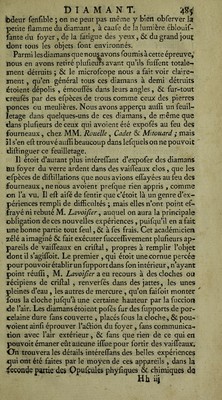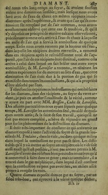![m^is il leur a fallu quatre ou cinq fois plus de temps qiïê dans Fair commun. M. Lavoîjïer Qon]t&MrQ avec beaucoup de vraifemblance, que dans cette expérience il peut y avoir eu au commencement une combuffion du diamant, favo- rifée par un peu d’air Commun ^ dont il eft difficile que le gaz foit entièrement exempt ; mais qu’enfuite le déchet s’eft fait fans combuffion , & par fimple volatilifation. Il y a tout lieu de croire en effet, que les corps regardés comme les plus fixes ne font pas abfolument exempts de volatilifation, lorfqu’on leur applique un degré de chaleur affez fort, c’eft-à-dire, fupérieur à leur fixité. Ces idées font confirmées par d’autres expériences que M. Lavoïfier fit enfuite fur du charbon dans un appareil femblable de vaiffeaux clos , dans l’air commun , & dans le gaz méphi- tique nommé air fixe. Le charbon eft bien reconnu pour un corps combuftible, & en même temps des plus fixes, & capable de réfifter à la plus grande violence du feu, quand il ne peut brûler, c’eft- à-dire , lorfque tout contaâ: avec l’air commun lui eft in- terdit : ainfi, quoique, à d’autres égards, il n’y ait nulle reffemblance entre le charbon & le diamant, il y en ace- pendant une très-grande & très-frappante, à raifon de ces deux propriétés , je veux dire de la combuftibilité réunie avec la fixité ; & comme ce font juftement de ces deux qualités que dépendent les phénomènes que préfente le diamant expofé au feu, M. Lavoifier a très-bien vu qu’il étoit à propos de foumettre aux mêmes épreuves ces deux fubftances, quoique d’ailleurs fi différentes. Cet habile phyficien ayant donc appliqué l’aélion du foyer du grahd verre ardent de M. Trudaine à du charbon parfaitement pur &bien fait, dans les mêmes appareils qu’il avoit em- ployés pour le diamant, a obfervé qu’il y avoit une très- petite portion du charbon qui fe brûloit d’abord , foit à caufe de l’air renfermé fous le récipient, foit à caufe de celui qui étoit mêlé avec le gaz méphitique; mais que quand cette portion d’air avoit produit tout l’effet qu’elle pouvoit produire, alors la combuftion ceffoit entièrement : & une fécondé obfervation encore plus effentielle, c’eft que, en continuant à tenir ce charbon au foyer, après toute com- buftion ceffée, M. Lavoifier l’a vu diminuer continuelle- inent & s’exhalçr çqît-jdç çn vapeurs j d’çî» U a conclu](https://iiif.wellcomecollection.org/image/b2877937x_0001_0558.jp2/full/800%2C/0/default.jpg)