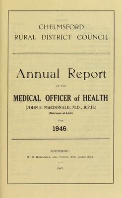 Credit: [Report 1946] / Medical Officer of Health, Chelmsford R.D.C. Source: Wellcome Collection.