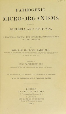 Pathogenic micro-organisms : including bacteria and Protozoa; a practical manual for students, physicians and health officers / by William Hallock Park ; assisted by Anna W. Williams.