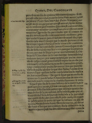 Credit: Question moral si el chocolate quebranta el ayuno ecclesiastico. Tratase de otras bebidas j confecciones que se usan en varias provincias. A D. Garcia de Avellaneda y Haro ... / por el licdo. Antonio de Leon Pinelo, relator del mismo consejo. Source: Wellcome Collection.