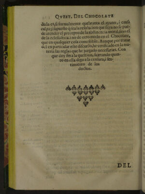 Credit: Question moral si el chocolate quebranta el ayuno ecclesiastico. Tratase de otras bebidas j confecciones que se usan en varias provincias. A D. Garcia de Avellaneda y Haro ... / por el licdo. Antonio de Leon Pinelo, relator del mismo consejo. Source: Wellcome Collection.