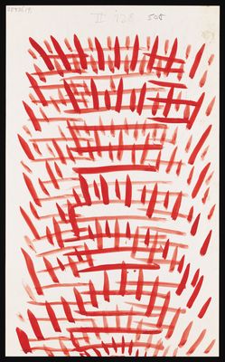 Credit: Red grids surrounded by diagonal lines, and red horizontal lines intersected by diagonal lines. Source: Wellcome Collection.