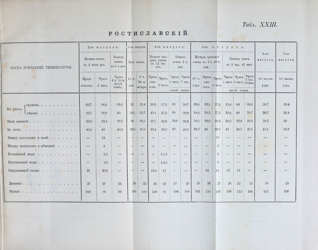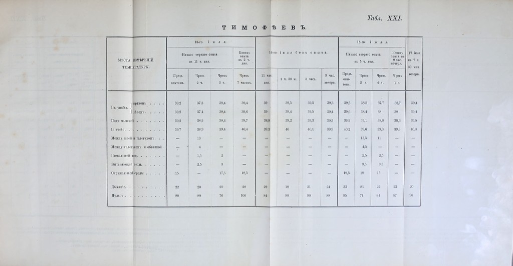 ![Показанія средней температуры. БОЛЬНЫЕ Въ какихъ мѣстахъ е о X § « н ® 5 .5 Л =4 ев Ііолучилось въ среднем». измѣрялась темпе- ратура. ь д ч в: о се Ч =1 Рч р- оз 2 Ф 2- м о, и о *- С. н 3 ° л Пониженіе темпера- туры. Повыше- ніе тем- пературы.1 Въ ушахъ . . . 39,72 39,42 0,30 Илышт Подъ мышкой . 39,75 39,77 — 0,02 Ін гесіо. . . . 40,55 40,43 0,12 - Въ ушахъ . . . 39,73 39,34 0,39 — Бутовскій . . . Подъ мышкой. . 39,57 39,51 0,і'6 — Ін гесіо-. . . . 40,27 40,26 0,01 — Въ ушахъ . . . 39,92 39,33 0,59 — Лянга Подъ мышкой. . 39,90 39,70 0,20 — Ін гесіо. . . . 40,45 40,73 - 0,28 Въ ушахъ . . . 39,62 38,86 0,76 — Романовъ . . . Подъ мишкой . 39,70 40,04 - 0,34 : Іп гесіо. . . . 40,63 40,47 0,16 — Въ ушахъ . . . 39,85 38,96 0,89 — Гренбергъ . . . Подъ мышкой . 39,65 39,77 — 0.12 Іп гесіо.... 39,95 40,03 - 0,08 Въ ушахъ . . . 39,20 38,35 0,85 — Алексѣевъ. . . Подъ мышкой . 39,55 39,47 0,08 — Іп гесіо .... 39,90 40,03 - 0,13 Въ ушахъ . . . 39,65 38,62 1,03 -- Маслениковъ. . Подъ мышкой . 39,80 39,65 0,15 - Іп гесіо.... 40,30 40,45 — 0,15 Въ ушахъ . . . 39,27 38,65 0,62 — Пятковъ . . . Подъ мышкой . 39,30 38,85 0,45 — Іп гесіо. . . . 39,80 39,55 0,25 — Въ ушахъ . . ! 38,70 37,61 1,09 — Афонинъ . . . Подъ мышкой . 38,85 38,66 0,19 — Іп гесіо. . . . 39,30 39,04 0,26- - Въ какихъ мѣстахъ Й і • ш М 3 в О <4 І* — ЕГ1 2 я о; к По іучилось 1 въ среднемъ. БОЛЬНЫЕ. измѣрялась темпе- ратура. н - Ч в; о 2 И . 85 Й .2 (р 2 - >-> О н - - Ь 2 „ о о а -тГ = ^ <=С А _ 2 Р.Н 2 о й “ Понижен темпера туры. е Повыше- ніе тем- пературы Въ ушахъ . . . >ин 39,07 37,67 1,40 Троицкій . . . Подъ мишкой. . 39,15 38,43 0,72 2 Іп гесіо. . . . 39,40 39,27 0,13 — Въ ушахъ . . . 39,40 38,07 1,33 — Ллндпиъ . . . Подъ мышкой. . 39,60 39,27 0,33 * Іп гесіо. . . . 40 50 39,80 0,70 — Въ ушахъ . . . 39,15 38,07 1,08 — Ефимовъ . . . Подъ мышкой. . 39,20 38,40 0,80 — Іп гесіо. . . . 40,00 39,25 0,75 - Въ ушахъ . . . 39,37 38,01 1,36 — ] Тнмофѣевъ , . Подъ мышкой. . 39,35 38,70 0,65 — 1 Іп гесіо. . . . 39,95 39,30 0,65 1 Въ ушахъ . . . 39,33 37,99 1,34 Фаламѣевъ . . Подъ мышкой. . 39,57 39,20 0,37 — і] Іп гесіо. . * . 39,93 39,66 0.27 — ] Въ ушахъ . . . 39,03 37,85 1,78 — 1 РостнславскШ . Подъ мышкой. . 39,47 38,77 0,70 — 1 ' . . Іп гесіо. . . . 40,27 39,47 0,80 - 1 Здор О в ы е. ы 1 Въ ушахъ . . . 36,80 36,15 0,65 1 - И Бусловнчъ . . Подъ мишкой. . 36,70 36,53 0,17 Іп гесіо. . . . 37,10 37,00 0,10 | ■ Въ ушахъ . . ■ 37,45 30,54 0,91 ■ Шучалннъ . . Подъ мышкой. . 37,40 36,88 0,52 — 1 I Іп гесіо. . . . 37,70 37,50 0,20 1 - 11](https://iiif.wellcomecollection.org/image/b22313783_0070.jp2/full/800%2C/0/default.jpg)