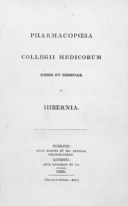 Credit: M0012586: Title page of <i>Pharmacopoeia Collegii Medicorum Regis et Reginae in Hibernia</i>, 1826. Source: Wellcome Collection.