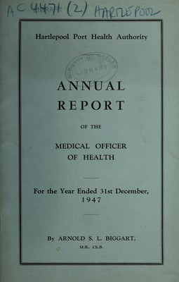 Credit: [Report 1947] / Medical Officer of Health, Hartlepool Port Health Authority. Source: Wellcome Collection.