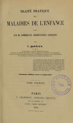 Traité pratique des maladies de l'enfance : fondé sur de nombreuses observations cliniques / par F. Barrier.