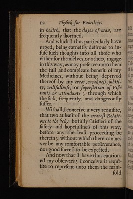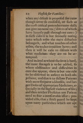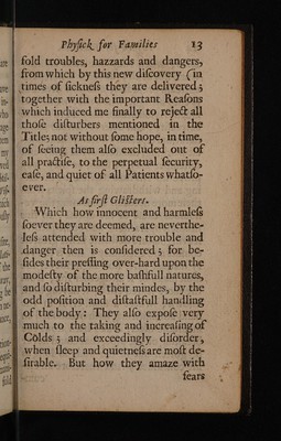 Credit: Physick for, families: or the new, safe and powerfull way of physick, upon constant proof established: enabling everyone, at sea or land, by the medicines herein mentioned, to cure themselves, their friends and relations in all distempers and diseases, Without any the trouble, hazzard, pain, or danger, of purgers, vomitters, bleedings, issues, glisters, blisters, opium, antimony and quicksilver. So full of perplexity in sickness / By W[illiam] W[alwyn] Healths Student. Source: Wellcome Collection.