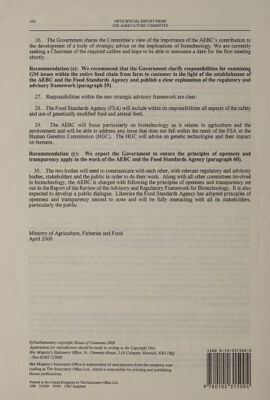 Credit: Reply by the Government to the third report from the Agriculture Committee, session 1999-2000 : "the segregation of genetically modified foods" (HC 71) / Agriculture Committee. Source: Wellcome Collection.