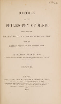 History of the philosophy of mind : embracing the opinions of all writers on mental science. From the earliest period to the present time / by Robert Blakey.