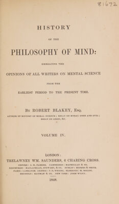 History of the philosophy of mind : embracing the opinions of all writers on mental science. From the earliest period to the present time / by Robert Blakey.