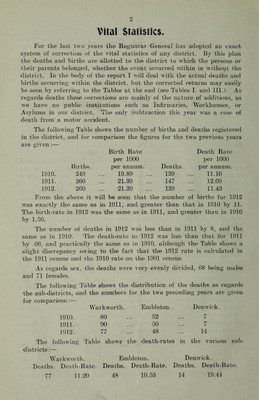 Credit: [Report 1912] / Medical Officer of Health, Alnwick (Union) R.D.C. Source: Wellcome Collection.