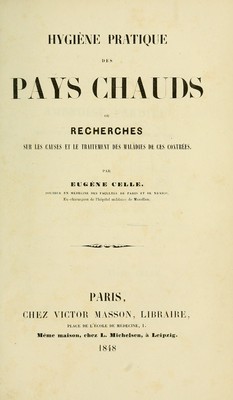 Hygiène pratique des pays chauds, ou, Recherches sur les causes et le traitement des maladies de ces contrées / par Eugène Celle.