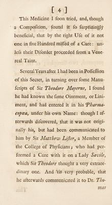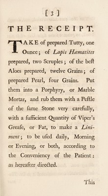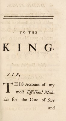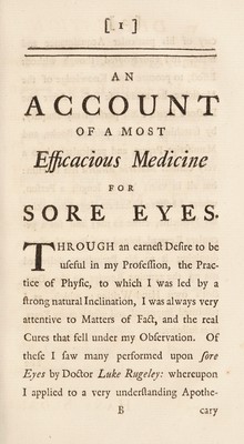 Credit: An account of a most efficacious medicine for soreness, weakness, and several other distempers of the eyes / By Sir Hans Sloane, bart. physician to his majesty, &c. Source: Wellcome Collection.