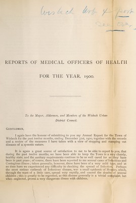 Credit: [Report 1900] / Medical Officer of Health, Wisbech U.D.C. / Borough. Source: Wellcome Collection.