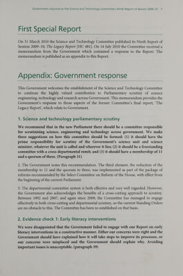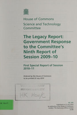 Credit: The legacy report : Government response to the Committe's ninth report of session 2009-10 : first special report of session 2010-11. Source: Wellcome Collection.