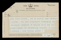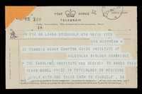 Credit: Nobel Prize Telegram. Source: Wellcome Collection.