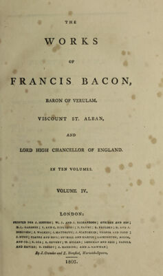 Credit: Works. Of Francis Bacon, baron of Verulam, viscount St. Alban, and lord high chancellor of England / In ten volumes. Source: Wellcome Collection.
