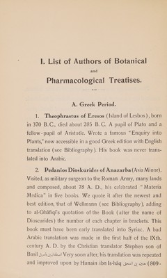 Credit: The abridged version of "The book of simple drugs" of Ahmad ibn Muhammad al-Ghâfiqî / by Gregorius Abu'l-Farag (Barhebraeus) Ed. from the only two known manuscripts with an English Translation, commentary and indices, by M. Meyerhof, G.P. Sobhy. Source: Wellcome Collection.