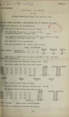 Credit: [Report 1944] / Medical Officer of Health, Lydd U.D.C. / Borough. Source: Wellcome Collection.