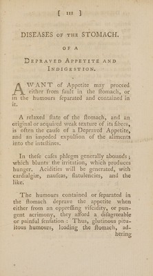 ![hering to its fides, or fuCtuating in its ca- vity ; or putrid and bilious humours, lodg~ ing in the prime viz, will leflen the appetite, and diminifh the defire for food. Another particular fpecies of a Depraved Appetite, and want of digeftion, will arife from a continual ufe of f{pirituous liquors 3 which will at leneth give a rigid contraction and acallous infenkbil ity to the coats of the ftomach; whenee innumerable and often irre- mediable coniplaints. When a want of appetite is owing to a relaxation of the ftomach,. fuch medicines are required, which, by their aftiingency, may gradually brace itup, and, by their warmth, encreafe the contration of its mufcular coats.— But as in general the prime via are loaded with a pituitous colluvies, it will be expedient firft to cleanfe and deterge the ftomach by emetics, and the gentle ftomach purge’s. No. Lxxiv. K Vin.ipecacuanh. 3}. Capiat mane jejun. ventricul. fuperbi~ bend infuf. rad. raphaniruft, ad vomition. excitand,. | Vel BR Sal’. vitriol, Sj. ; Aq. fontan. 5 ij 8. - “Syr. balfam. 3]. M. ft. hauft. fumend, ut fupra..](https://iiif.wellcomecollection.org/image/b30789540_0002_0156.jp2/full/800%2C/0/default.jpg)