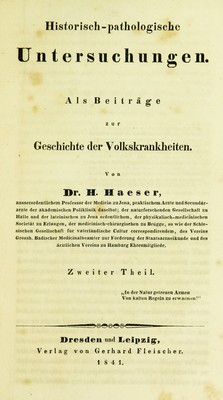 Historisch-pathologische untersuchungen als beiträge zur Geschichte der Volkskrankheiten / von H. Haeser.