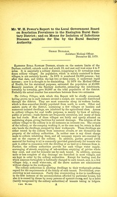 Credit: Mr W. H. Power's report to the local government board on scarlatina prevalence in the Easington rural sanitary district ; and on means for isolation of infectious diseases available for use by the rural sanitary authority. Source: Wellcome Collection.