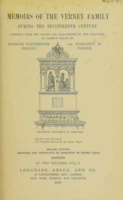 Memoirs of the Verney family during the seventeenth century / compiled from the papers and illustrated by the portraits at Claydon House, by Frances Parthenope Verney and Margaret M. Verney.