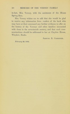 Memoirs of the Verney family during the seventeenth century / compiled from the papers and illustrated by the portraits at Claydon House, by Frances Parthenope Verney and Margaret M. Verney.