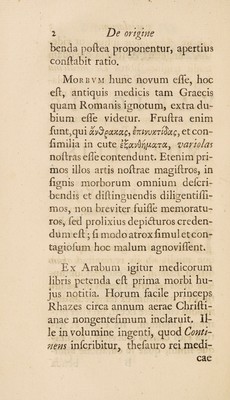 Credit: De variolis et morbillis liber / Avctore Richardo Mead ... Hvic accessit Rhazis, medici inter Arabas celeberrimi, de iisdem morbis commentarivs. Source: Wellcome Collection.