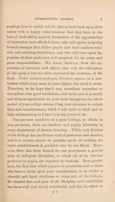 An introductory address delivered in King's College, London, October 1, 1857, at the opening of the winter session of the Medical Department; also, An inaugural lecture on materia medica and therapeutics given May 1, 1857 / by George Johnson.