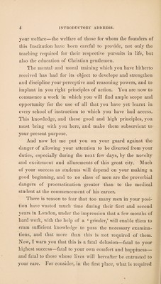 Credit: An introductory address delivered in King's College, London, October 1, 1857, at the opening of the winter session of the Medical Department; also, An inaugural lecture on materia medica and therapeutics given May 1, 1857 / by George Johnson. Source: Wellcome Collection.