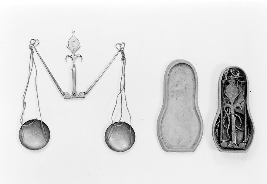 Credit: M0014149: One folding balance shown partially opened and one in a case, 18th century. Source: Wellcome Collection.