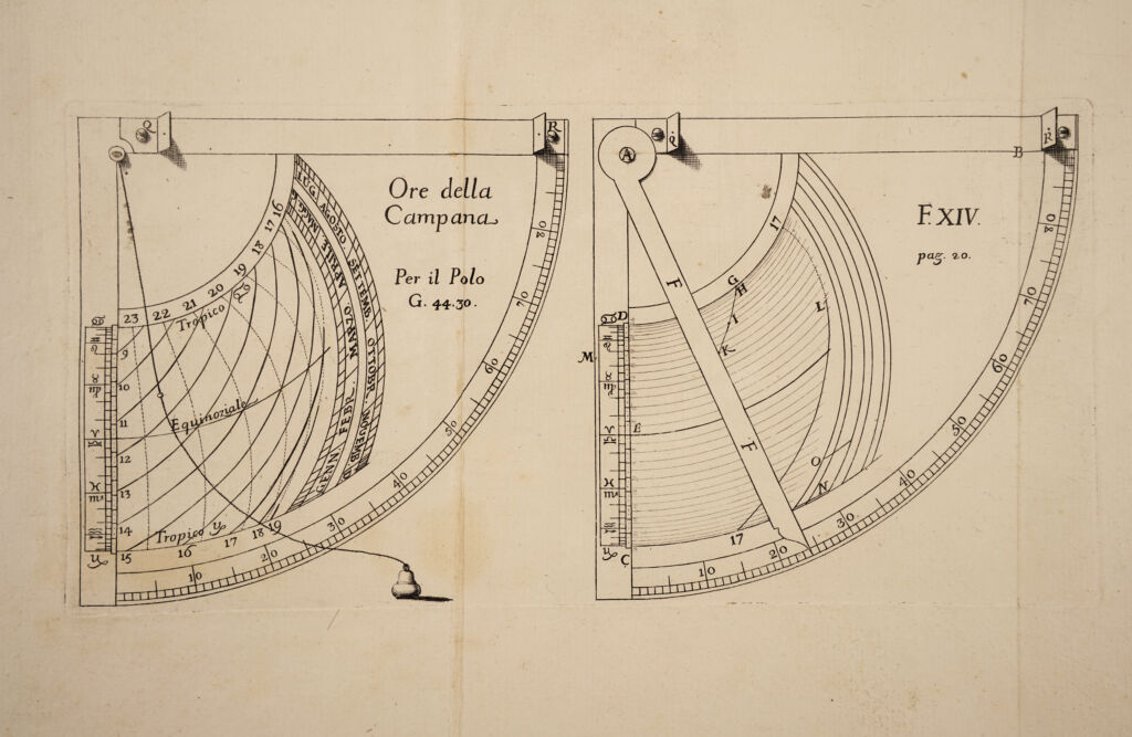 Credit: Tavole per regolare ... gli orologj a ruote ... con una tavola perpetua del principio dell'aurora, levar del sole, mezzo giorno, e mezza notte; le quali tavole sono come appendice alle gnomoniche / [Giovanni Lodovico Quadri]. Source: Wellcome Collection.