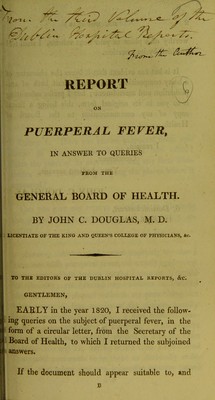 Credit: Report on puerperal fever : in answer to queries from the General Board of Health / by John C. Douglas. Source: Wellcome Collection.