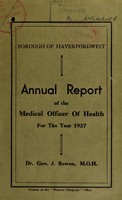 [Report 1937] / Medical Officer of Health, Haverfordwest Borough. Attribution 4.0 International (CC BY 4.0). Source: Wellcome Collection.