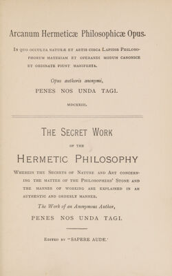 An English translation of the Hermetic Arcanum of Penes Nos Unda Tagi [pseud.] 1623 / With a preface and notes by "Sapere Aude".