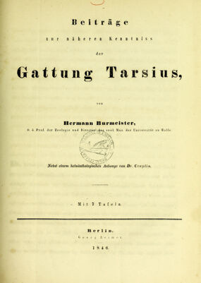 Beiträge zur näheren Kenntniss der Gattung Tarsius / von Hermann Burmeister ; nebst einem helminthologischen Anhange von Dr. Creplin.