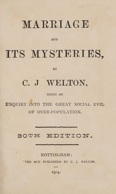 Marriage and its mysteries : being an enquiry into the great social evil of over-population / by C. J. Welton.