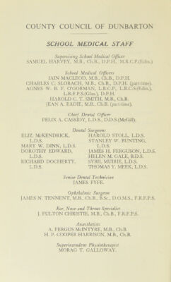- Dumbartonshire (Scotland). County Council. School Medical Service.