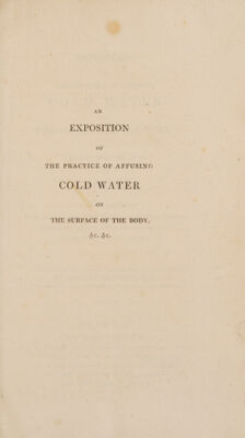 An exposition of the practice of affusing cold water on the surface of the body, as a remedy for the cure of fever: to which are added, remarks on the effects of cold drink, and of gestation in the open air in certain conditions of that disease / [Robert Jackson].