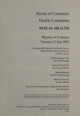 Credit: Sexual health : minutes of evidence, Tuesday 23 July 2002 : session 2001-02 / Health Committee. Source: Wellcome Collection.