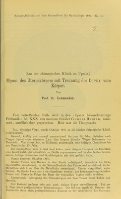 Myom des Uteruskörpers mit Trennung des Cervix vom Körper / von Prof. Dr. Lennander.