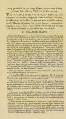 Canine pathology, or a full description of the diseases of dogs; with their causes, symptoms, and and mode of cure ... Interspersed with numerous remarks on the general treatment of these animals; and preceded by an introductory chapter on the moral qualities of the dog / By Delabere Blaine.
