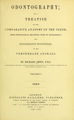 Odontography, or, A treatise on the comparative anatomy of the teeth; their physiological relations, mode of development, and microscopic structure, in the vertebrate animals / by Richard Owen.