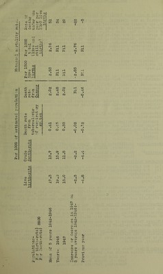 ![ANFJAL REPORT FOR 1947 Health Department, Council Offices, Freshfield Road, F0R]\.©Y. 1948. To the Chairman and Members of the Formby Uroan District Council. Ladies and Gentlemen, I have the honour to submit my Annual Report on the Health and Sanitary conditions of your district for 1947. The Urban District of Formby is situated on the estuary of the Mersey, north of the River nit, and approximately mid-way between Liverpool and Southport. It has on its southe.n, eastern and northern boundaries agricultural land throughout their entire l.ength. The greater portion of the eastern boundary is formed by Downholland Brook, which empties into the River Alt, and this brook takes practically the whole of- the surface water drainage of the district. The district is rather scattered, and the chief development is on the eastern side of the L,M.& S.Railway, which runs through the centre of the district due north and south. The configuration of the district is flat and the sub-soil is drift sand . in the district is as yet undeveloped, space. There are two golf clubs in a football field and a cricket field been scheduled as open spaces in the The major portion of the land and this provides abundance of open the district, comprising 555 acres, which, along with other areas, have Council's Town Planning Scheme. Oa the open space known as No.5 in the Town Planning Scheme a very artistic pavilion and public conveniences have been erected, a bowling green ahd miniature golf course have been constructed and p.tches set aside for football and cricket. Tennis courts are to be laid in the near future. This open space is close to Formby Station and its boundaries are: on the North, Duke Street, on the West, Kings Road, on the South, Phillips Lane and on the Bast, Duke’s Farm. Its area is approximately 12 acres. The social conditions are fairly good. There are no slum areas but there is a ' o-rtain amount of overcrowding. There is a definite shortage of houses which, as time goes on, will be greatly relieved by the Council’: proposed Housing Schemes. The total number of Council Houses is now 102, Parlour typo - 14, Non-parlour type - 68,and 17 Huts on the Woodvale R.A.F Site have been conv.rted into 34 dwellings. The Acts and Regulations relating to Infectious Diseases have been carefully followed. The hospital accommodation provided by the Bootle Corporation under agreement is very satisfactory and the removal of patiants is carried out very efficiently. The district has been careful-g inspected and the sa.’iitary condition is fairly good. Of course, there are faults and a greau many have been, and many more will be, eliminated a, the sewers are extended. The total number of cases notified under the proviso to Article 5 of the Ptlblic Health (Infectious Diseases Regulations) 1927, the Measles and Whooping Cough Regulations IC-iO and the Public Health (Tuberculosis) Regulations 1930 wo.s 2;d9, an increase of 100 on the year 1946. The average for the past five years is 140.2 and a rate for the 3^ear of 25.61 per thousand of the population. This increase was due to the greater number of Measles and Whoop'ng Cough notified, even so, there abnormal and the hea.'.oh of the Dxstr.vct was very satisfactoxy. During the year 134 births were registered (66 males and giving a birth rate of .15,0 per thousand of the population. Last year the births numbered 176 giving a birth rate of 19.8 per thousand of the population. This shows a decrease for the year 11-47 of 4.8 per thousand of the population. The number of deaths during the year numbered 103 (52 males.. 51 females) giving n dea'’;h rate of 11,5 per thousand of the popiiiatx on. Las' year the deaths numbered 14- giving a death rate of 15,9. Tnis shows a decrease f^r 1947 of 4.4 per thousand of the population. CP V/QS nothing 68 females)](https://iiif.wellcomecollection.org/image/b29209614_0001.jp2/full/800%2C/0/default.jpg)