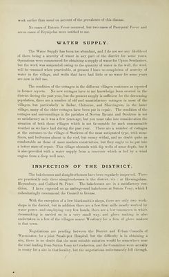 ![Medical Officer’s Keport for 1903. . Wahmtnstei>>, Jaxtahy 24. 11)04. Mr. Chairman and (Gentlemen. Anorlior ]^orio(l has arrived for me to present to yon my Animal Rej^ort as to the liealtli and sanitary condition of the district. DEATH RATE. From the tabnlar forms accompanyino- this report, it will be seen that the deaths of 91 ]:)ei‘Sons were rey-istered in the district. I cannot ascertain that any r('si<lent of the district died out of, nor has any non-resident died in the district, conse(pienlly no correction is necessarv to tlie nnniber yiven above, Mdiich gives a death rate of Id'b per 1000, a rate I consider (piite satisfactory. 4die ages of death ranged from 15 minutes to 90 years, and the deaths of persons over 80 years of age nnmbered 17. AVith regard to seasons, there M-ere 27 deaths in the first (piarter, 25 in the second, 15 in the third, and 24 in the last. The eleaths of young children under one vear of age nnmbered 10. One death occnrre<l from Scarlet Fever. BIRTH RATE. Th(' birllis nnmlxn-ed 116. eipial to a birth rate of 18’6 per 1000. INFECTIOUS DISEASES. 1 will now iid’er to the ])revalence of infections diseases during the year. DIPHTHKRIA.—Only one case of this disease was notitied to me, SCARLKT FKA’FR.—ddiis disease has been very jirevalent in some })arts of the district, but the cases were generally of a very mild tygie. Forty-two cases Mon’c reported to me, viz. : fourteen at the Codfords. thirteen at Corsley, seven at hiorton, and one each at tJrockerton, Sutton Parva, Chitterne, Gorton, and Tyther- ington. The School at Codford St. I'eter was closed for the summer holidav a](https://iiif.wellcomecollection.org/image/b30234128_0001.jp2/full/800%2C/0/default.jpg)