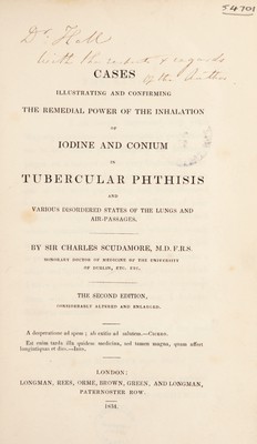 Cases illustrating and confirming the remedial power of the inhalation of iodine and conium in tubercular phthisis and various disordered states of the lungs and air-passages / By Charles Scudamore.