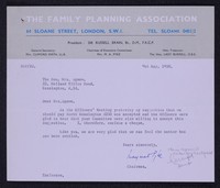 Credit: Correspondence about proposed amalgamation with FPA. Source: Wellcome Collection.