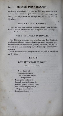 Credit: Le gastronome français, ou l'art de bien vivre / par les anciens auteurs du Journal des gourmands, MM. G.D.L.R*** ... Ouvrage mis en ordre, accompagné de notes, de dissertations et d'observations par M. C***. Source: Wellcome Collection.