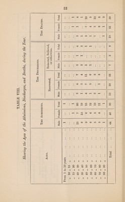 Credit: The twenty-second annual report of the United Committee of Visitors : being the report for the year 1870 with list of visitors and officers of the institution, medical and financial statements, etc / Leicestershire and Rutland Lunatic Asylum. Source: Wellcome Collection.